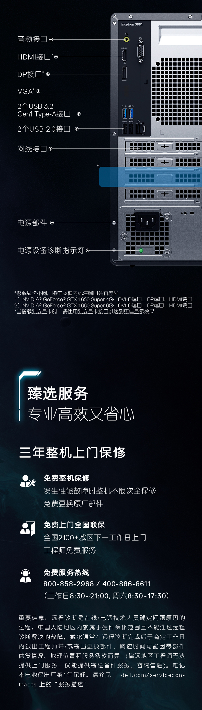 DELL/戴尔 Ins3881十代i5/i7游戏台式机1650S/1660S办公主机电脑家庭台机电竞官方灵越独显